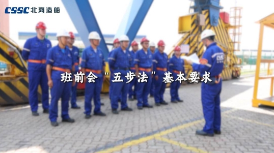 一點名,二講評,三交底,四確認,五承諾。北海造船制作了班前會“五步法”指導視頻及手冊,以直觀的聲畫形式,精準指導各個班組規范召開班前會。目前,北海造船1000余個班組已全面落實班前會“五步法”管理要求。